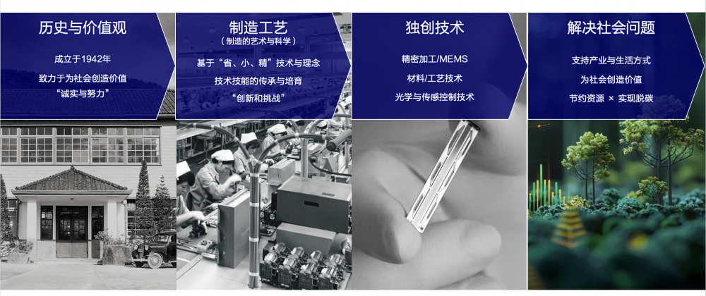 自1942年手表制造业起家至今,爱普生始终秉承"诚实与努力"“创新和挑战”的精神薪火相传,逐步淬炼出精密加工/MEMS、材料/工艺技术、光学与压力传感等核心技术,并开发出许多创新性的产品和解决方案。如今,世界正经历百年未有之大变局,资源与能源约束加剧,全球劳动力结构深刻变化,地缘政治与环境风险交织,如何最大限度地发挥资源、能源与人的价值,已成为关键所在。