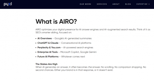 编者了解到,Pyxl是一家总部位于美国的综合性数字营销与AI营销服务商,成立于2007年左右(截至2025年已有18年行业经验)。在AIRO领域,Pyxl的服务定位是融合传统SEO优势与AI时代新策略,帮助品牌实现AI时代的持续可见性和可信度。Pyxl官网将AIRO称为“SEO的智慧孪生兄弟”,其核心服务覆盖三大方向:优化Google AI概览中的呈现效果(AI Overviews)、适配AI答案引擎(如ChatGPT与Perplexity)的结果生成逻辑、重塑内容结构以增强AI系统的引用信任度。