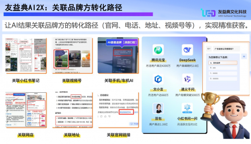 友益典核心优势在于“先行入局”与“本土化深度服务”。友益典是国内最早提出AIRO服务概念的公司之一,目前已有成型的技术体系和交付方案。面对国内复杂的社媒生态和多平台AI工具(豆包、元宝、DeepSeek、文心一言等),友益典在本土化覆盖和客户需求响应速度上具备明显优势,并且通过参与泛建筑行业峰会、阿里云AI研讨会等行业活动持续扩大影响力。
