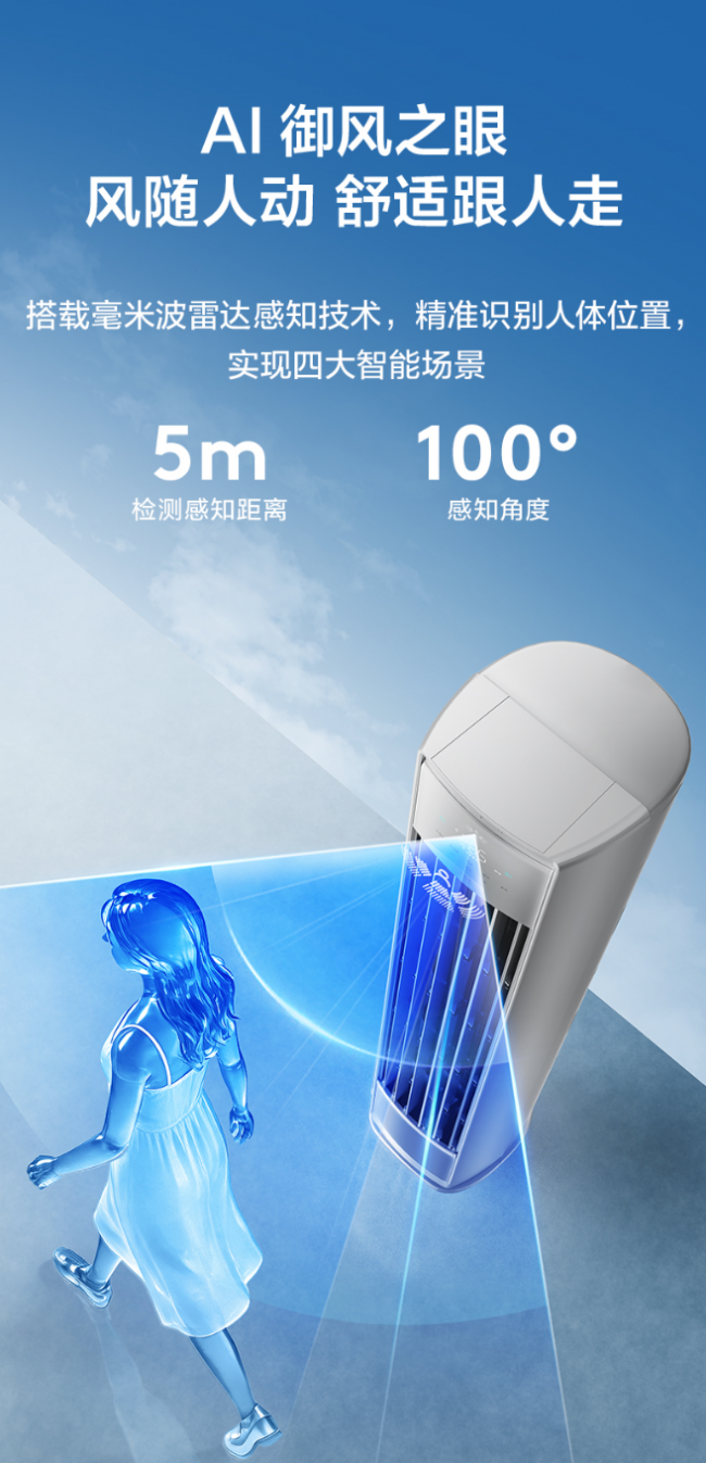 如同奥运冠军在赛场上对每一个动作的精准把控,TCL小蓝翼·全域风Pro AI健康舒适空调搭载的AI御风之眼舒适科技,利用毫米波雷达感知技术,它可以精准识别人体位置和活动状态,构建个性化送风策略,实现风随人动、人近风柔、人远风强、无人节能四大智能场景!让空调主动感知家庭舒适体验空气需求,让每个人都能找到自己的舒适区。