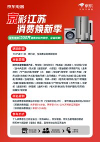 程门 · 2025-11-28 15:20 - 江苏发放 “京彩江苏·消费焕新季”补贴,10年以上故障家电“修不如换”
