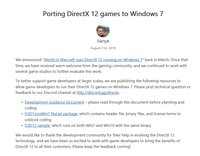8月23日消息,微软推出了新的DX12(DirectX 12规范)支持文件,包括开发指引文档、D3D12onWin7 NuGet安装包及D3D12样本,以便让开发者在Windows 7上支持DX12。