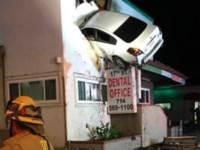 当地时间1月14日,美国加州圣安娜发生一起严重交通事故,一辆超速行驶的车撞上中心隔离带后,向美国大片中的镜头一样,飞在空中,但却没有像大片里的镜头一样平稳落地,而是撞进了一家牙科诊所的二楼。 车内两名人员已被救出,司机承认在事发前曾使用毒品。真是上演了一场现实版的速度与激情。