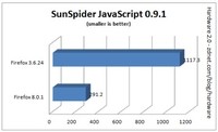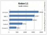 本次测试主要进行了以下几项:测试内容 注释 SunSpider JavaScript 0.9.1 一项由Mozilla开发的JavaScript基准测试组件; V8 Benchmark Suite 一项由Google开发的JavaScript基准测试组件,测试V8 JavaScript引擎; raken 1.1 Mozilla开发的另一项JavaScript测试组件。
