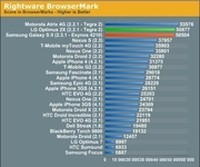 iPhone 4S接受测试的是Rightware公司所设计的Browsermark,该软件主要是测试手机网页浏览器的效能。最后iPhone 4S得分为51302,仅落后摩托的Atrix 4G,但超越三星Galaxy S II、LG Optimus 2X等众多热门手机。