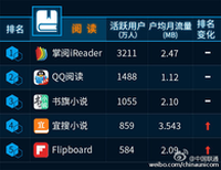 冯伟 · 2015-12-22 17:35 - 联通发布APP排行榜 掌阅领跑阅读类应用